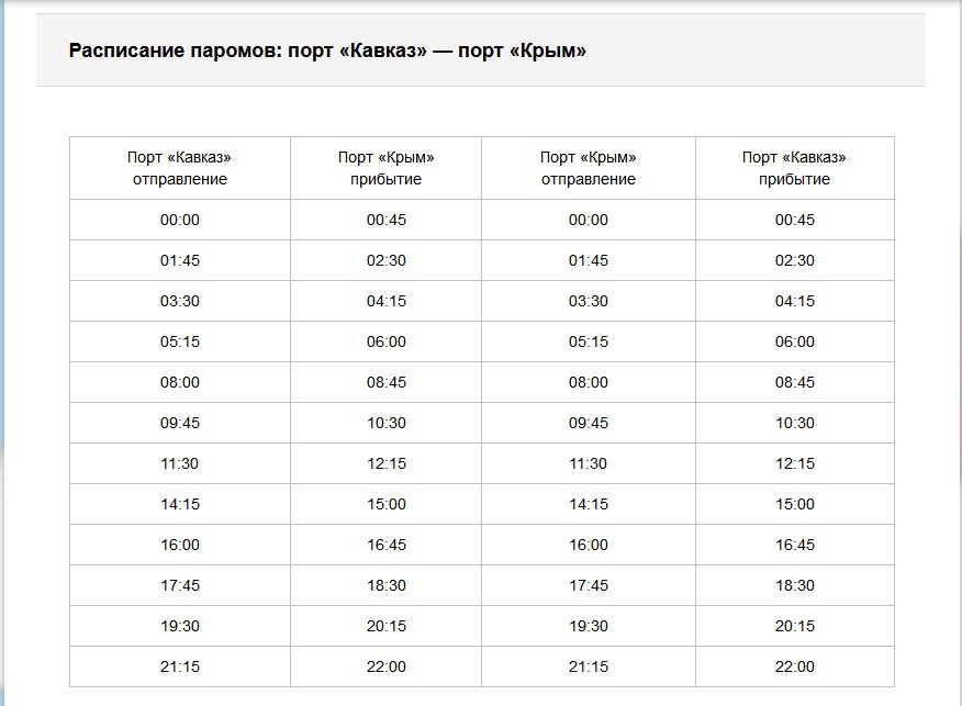 В период проведения работ по реконструкции причала в порту Крым действует временный график курсирования паромов.