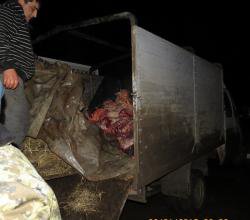 Владелец контрабандного груза укрыл части расчленённых коров и телят старым полиэтиленом, а поверх него присыпал толстым слоем сена.