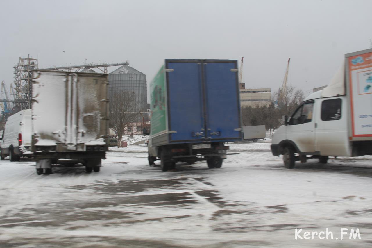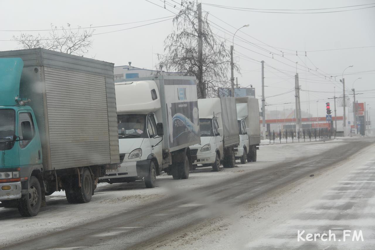 В Керчи, 17 февраля возле рыбного порта, образовалась очередь из машин, которые ждут погрузку на паром.