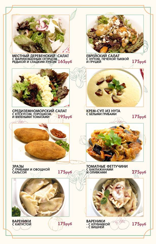 - В Веранде - Суп из нута с белыми грибами. Хотя, традиционные грибные зразы с овощной сальсой и сладкие вишнёвые вареники на десерт тоже очень хороши. В Инки - фокачча с овощными паштетами и хумусом. Универсальное блюдо. Вкусно само по себе и отлично дополняет любой суп. В Жар-Пиццах - постный борщ с красной фасолью. Просто, вкусно и очень по-домашнему. У меня мама такой часто готовит)