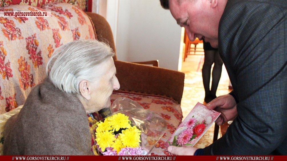 Заместитель председателя Керченского горсовета Александр Васильевич Беленко подарил женщине цветы и открытку от имени власти муниципального образования. В этот день женщина отмечала свой 97-й день рождения.