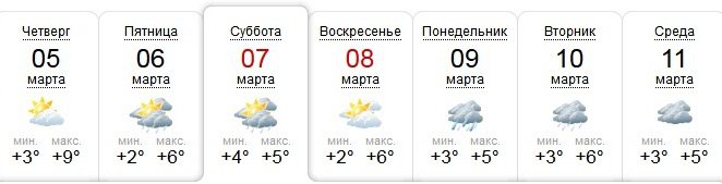 В субботу, 7 марта температуру днем обещают от 12 ° до +17 °. Но при этом ожидается ветер до 20 м/с