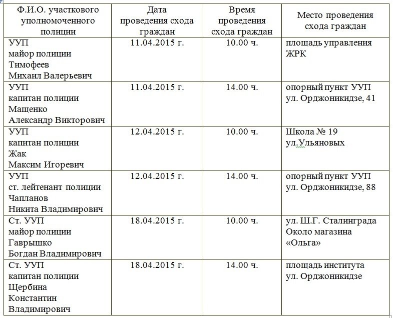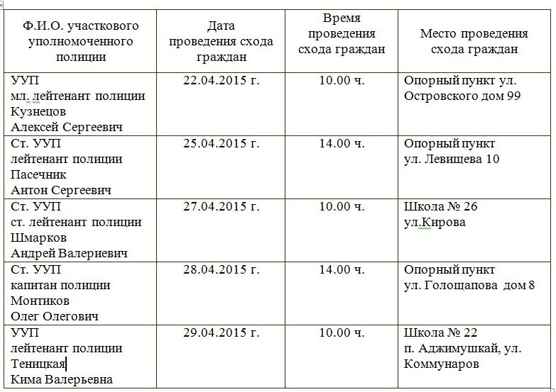 проведения схода граждан участковыми уполномоченными полиции