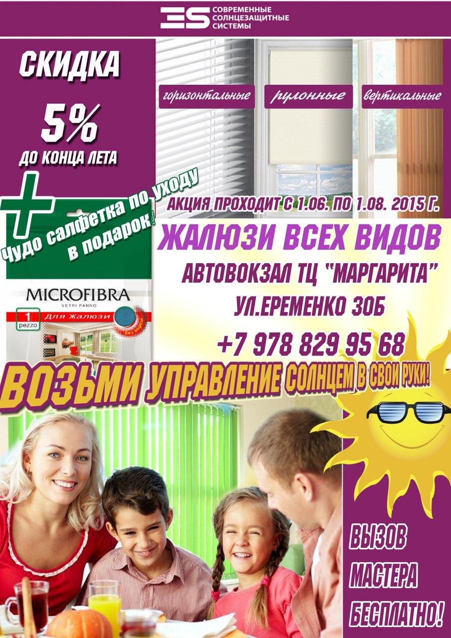 скидка 5% на все виды жалюзи + Чудо салфетка из Микрофибры в подарок!