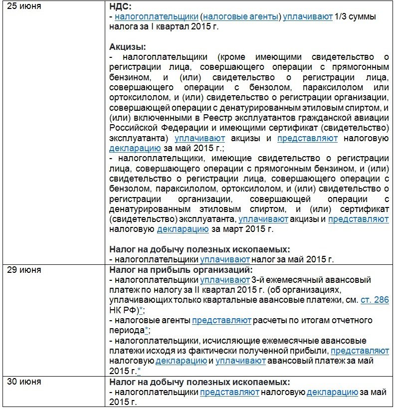 Межрайонная инспекция ФНС России №7 по Республике Крым сообщает налоговый календарь на июнь 2015 года, - передает Керчь.ФМ.