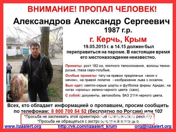 В редакцию Керчь.ФМ обратилась женщина. Она рассказала, что пропал Александров Александр Сергеевич.