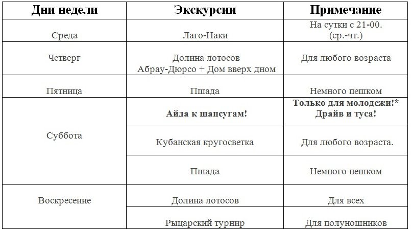 Даты: 8, 15, 29 августа. В 10-30 на переправе п. Крым.