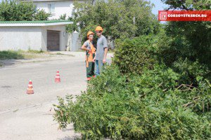 Также, как сообщает пресс-служба администрации Керчи, обрезка деревьев производилась в посёлке Аджимушкай, по улице Коммунаров.
