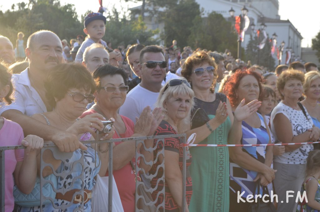 Зрители под аплодисменты и крики встретили участников костюмированного шествия. После чего школьники Керчи начали танцевать и в результате, выстроились в торт из шаров. Стоит отметить, что из торта была зажжена своеобразная свеча в виде хлопушки. В честь города-героя прогремел салют.