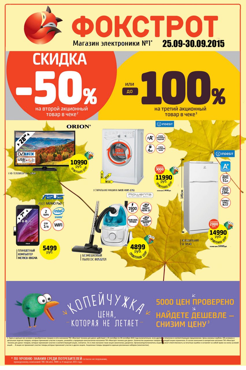 В последний сентябрьский уикенд Ваш любимый магазин бытовой техники приготовил для Вас приятные сюрпризы! Дарим каждому нашему покупателю накопительную бонусную карту Фокстрот, на которую возвращаем часть потраченных Вами денег - для того, чтобы Вы могли снова радовать себя и близких желанными покупками.