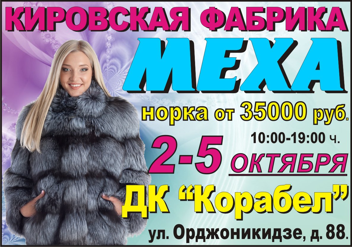 Ярмарка МЕХА г.Киров с выставкой-продажей МЕХА 2-5 октября в г. Керчь в ДК "Корабел"