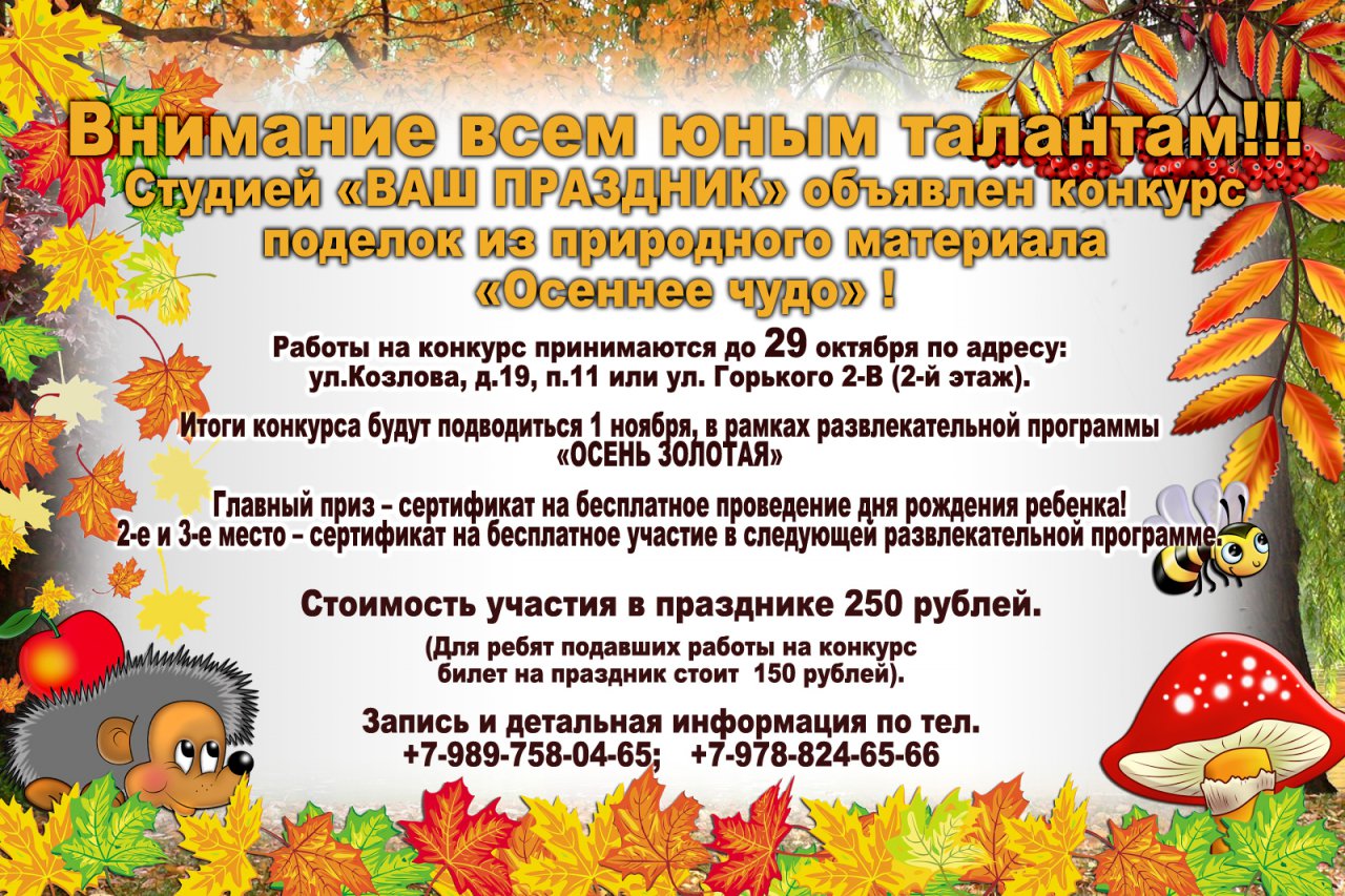 Бесплатный день рождения для победителя творческого конкурса от студии "Ваш праздник"