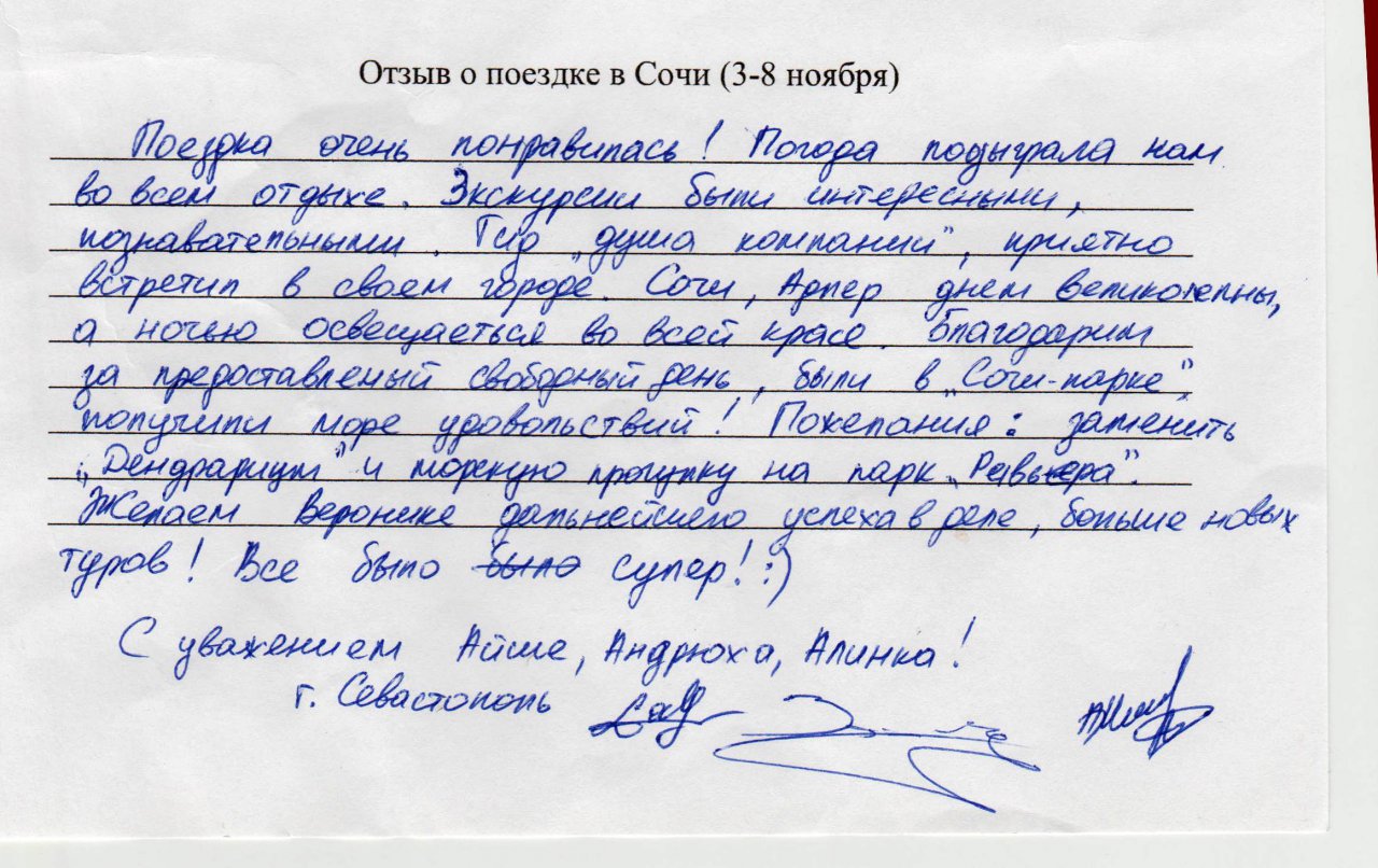 Отзывы о наших поездках! Отзывы о самых недавних поездках!