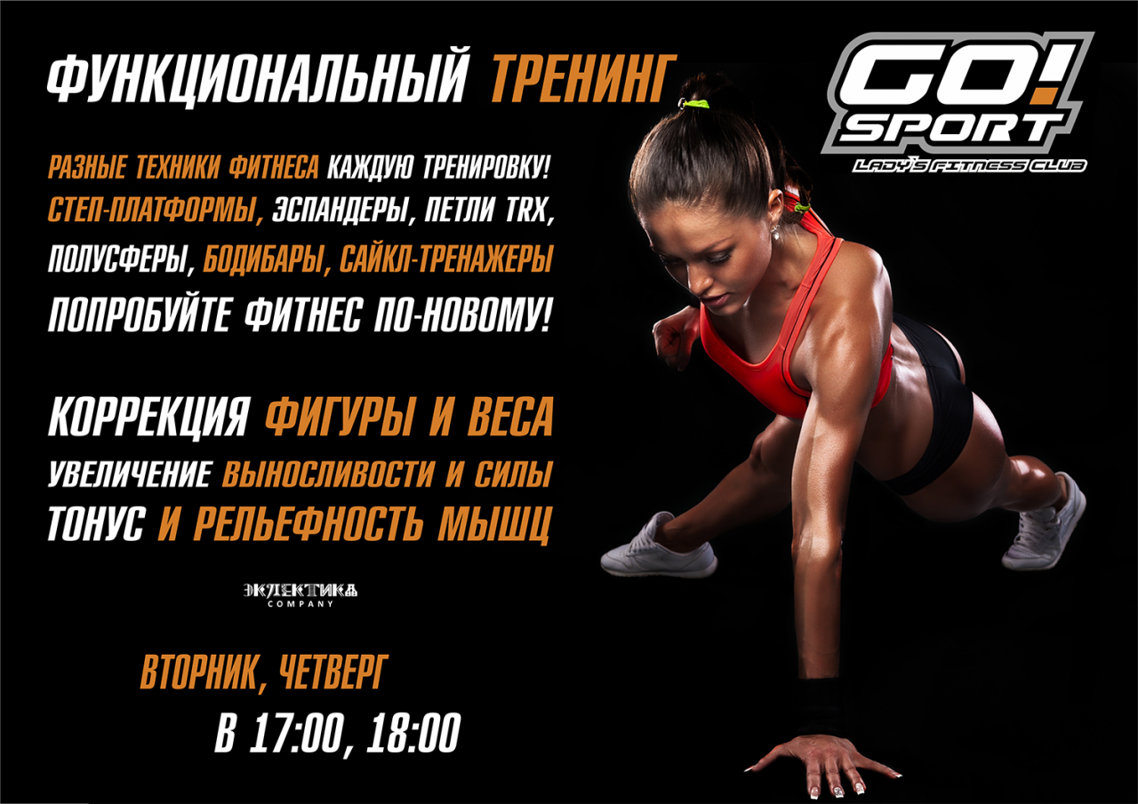 Для самых активных девушек, которые никогда не сидят на месте, и для любительниц пробовать что-то новенькое, GO!Sport объявляет набор в новую группу фитнес-ассорти! Это прекрасная возможность попробовать различные танцевальные и аэробные направления, а также такие занятия, как стрейчинг, калланетика и степы, тренируясь всего лишь в одной группе!