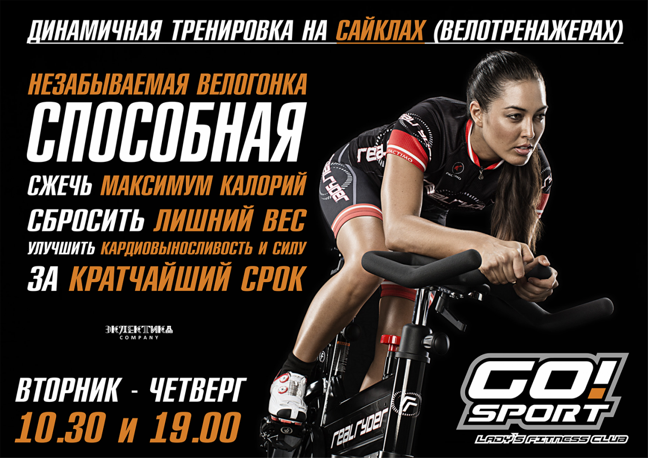 Это высокоинтенсивные аэробные занятия на стационарных велосипедах – сайклах – имитирующие гонки с различной интенсивностью. Направленные на быстрое снижение веса и позволяет быстро подтянуть мышцы. Тренировки укрепляют сердечнососудистую и дыхательную систему, а также дают высокую нагрузку на мышцы бедер и ягодиц. Занятия проводятся разово.