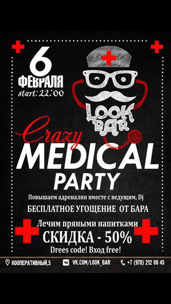 6 февраля 22.00 LOOK BAR приглашает всех на вечеринку CRAZY MEDICAL PARTY .