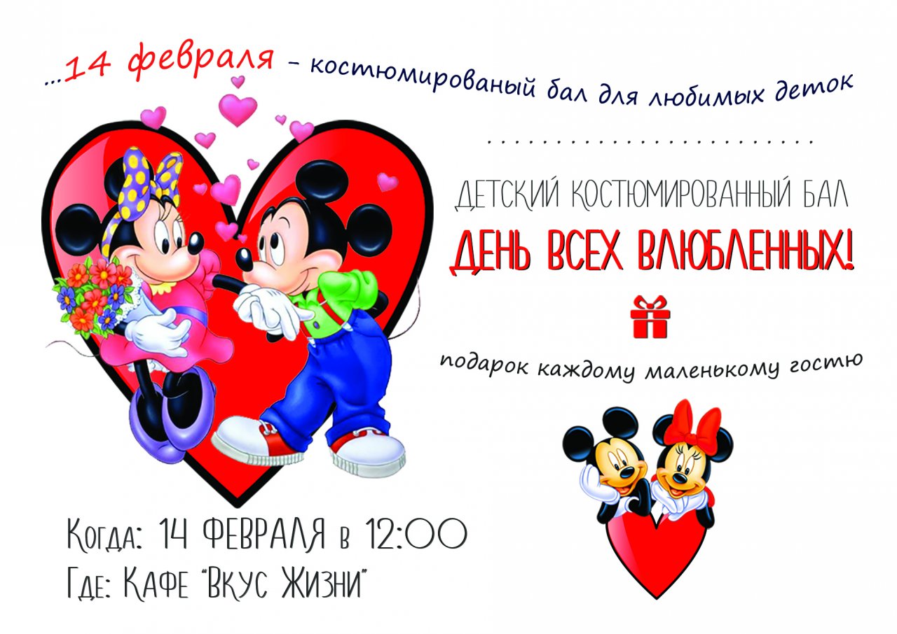 14 ФЕВРАЛЯ - ВОСКРЕСЕНЬЕ: Детский костюмированный утренник "МИККИ И МИНИ МАУС"!