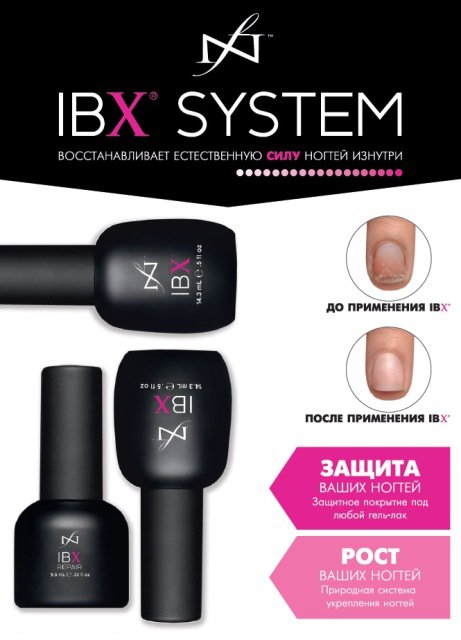 Главное отличие IBX от множества укрепляющих покрытий, представленных на рынке в том, что в отличие от традиционных средств, IBX сцепляется с поверхностью ногтя и проникает в саму ее структуру. Поэтому он не снимается жидкостью для снятия акрила и гель-лаков, а отрастает только вместе с натуральным ногтем, и удалить его можно только срезав.