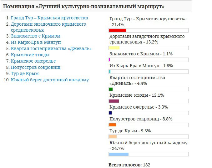 Министерство курортов Республики Крым с помощью интернет-голосования определит лучшие туристические маршруты полуострова. Об этом сообщила пресс-служба Минкурортов со ссылкой на заместителя министра Ольгу Бурову, - передает Керчь.ФМ.