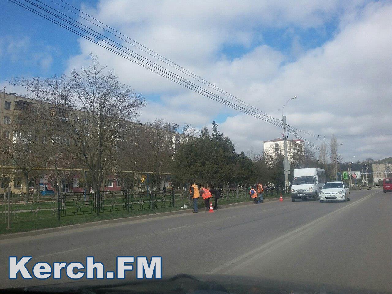 В Керчи, 14 марта, на Камыш-Бурунском шоссе люди красят заборы, которые ограждают тротуар от проезжей части. Сами рабочие находятся на дороге, соблюдая технику безопасности, - сообщает корреспондент Керчь.ФМ.