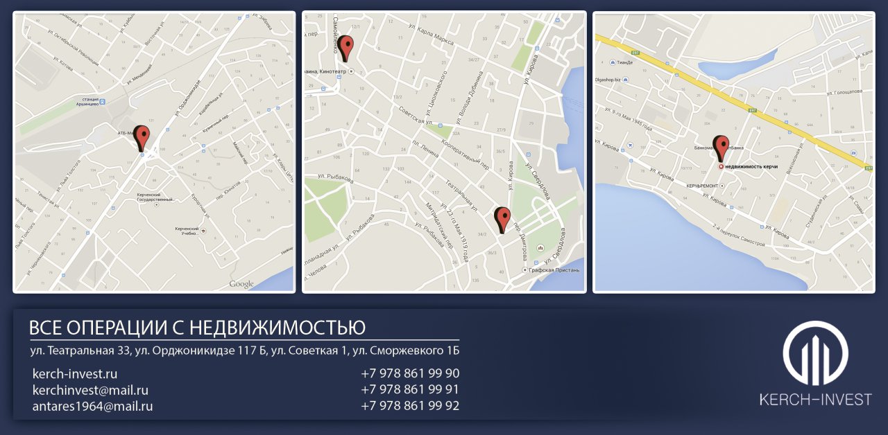 МЫ находимся: г. Керчь, ул. Театральная 33, ул. Советская 1,