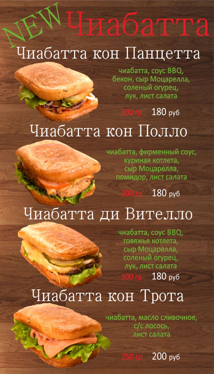 Свежая и мягкая ЧИАБАТТА, только из печи, с вкусным соусом и превосходной начинкой!