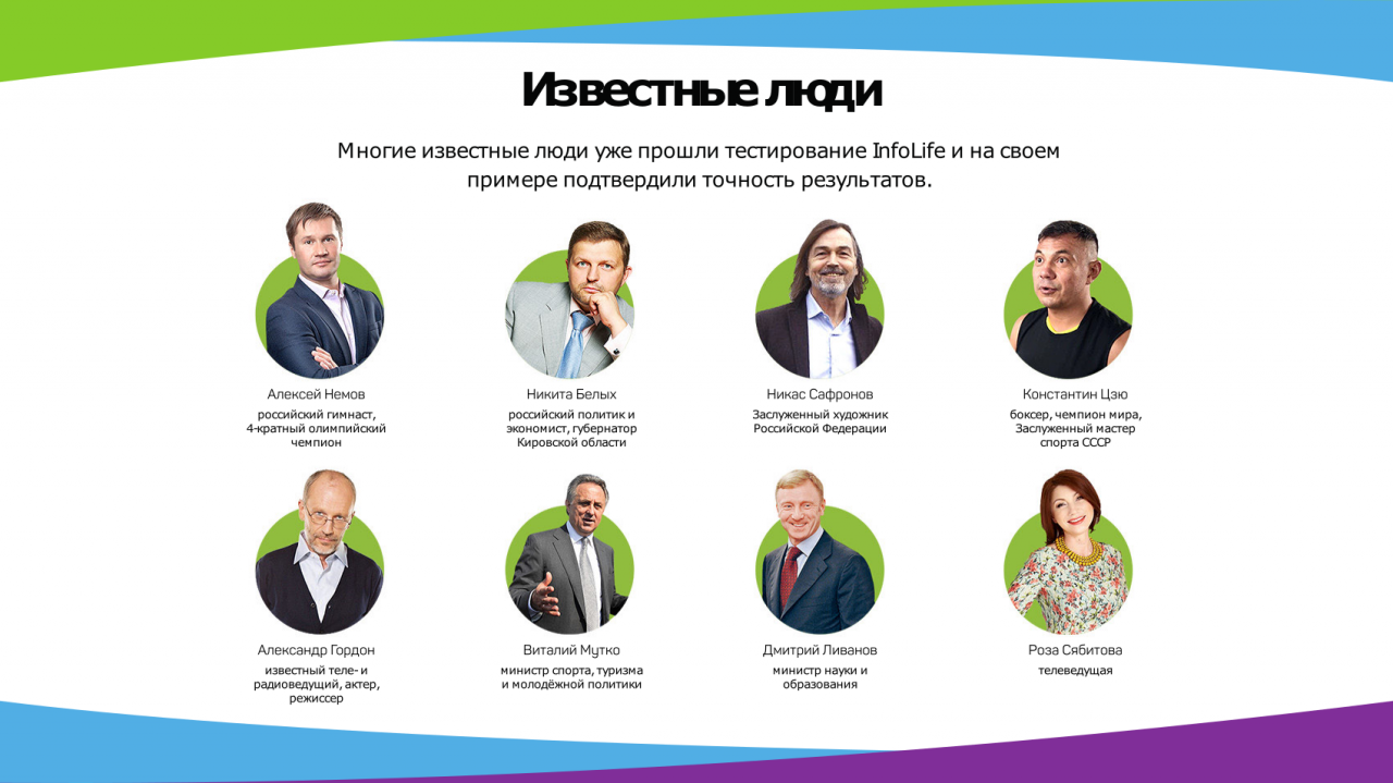 Многие известные люди уже на себе опробовали это тестирование, и подтвердили его соответствие, вот некоторые из них.