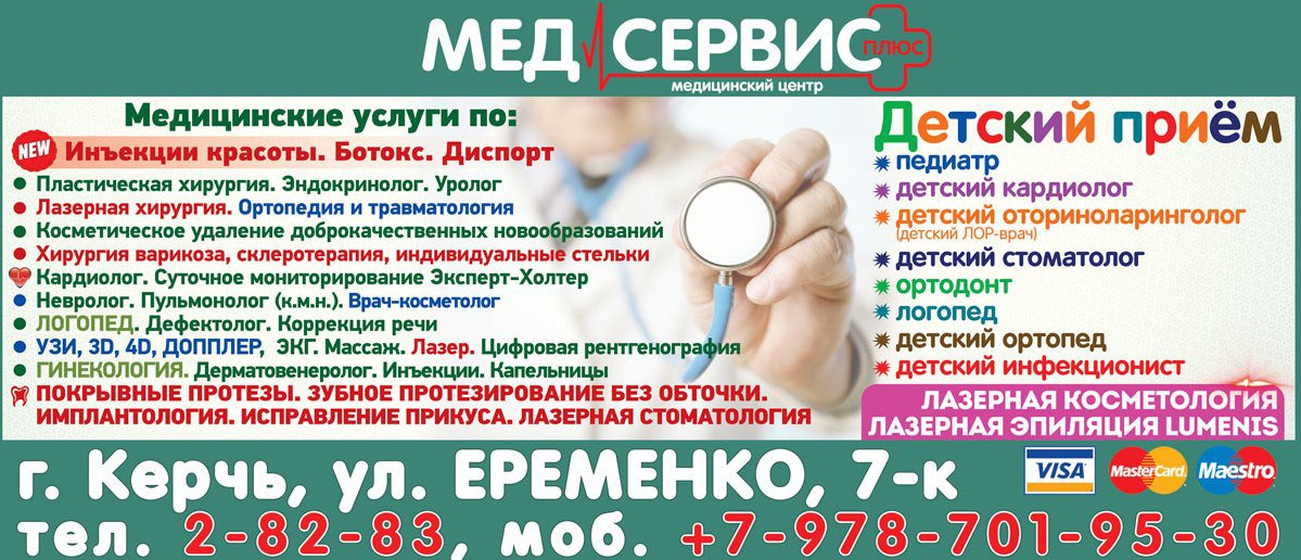 В медицинском центре «МЕД-СЕРВИС ПЛЮС» ведут прием детские врачи узкой специализации по таким направлениям: кардиология, оториноларингология, травматология-ортопедия, стоматология, ортодонтия, логопедия и дефектология.