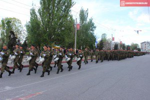 В ходе мероприятия, ветераны Великой Отечественной войны и зарничные отряды вручили Георгиевские ленты участникам парада.