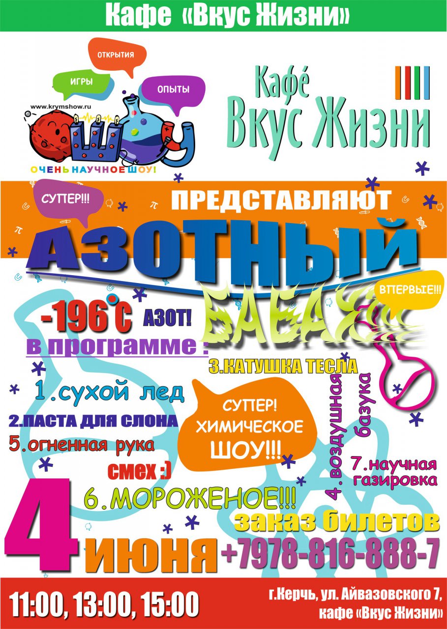 Суббота: 4 ИЮНЯ! ХИМИЧЕСКОЕ ШОУ-ПРЕДСТАВЛЕНИЕ "АЗОТНЫЙ БАБАХ"!