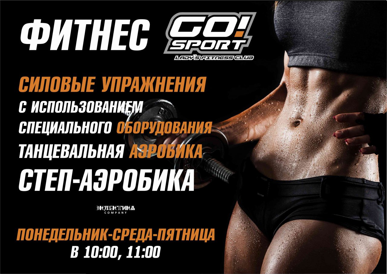 Фитнес – это комплекс физических и танцевальных упражнений, целью которых является улучшение фигуры и настроения. Включает в себя занятия степ-аэробикой, танцевальной аэробикой, силовые упражнения с использованием специального оборудования: бодибары THE BODY BAR, полусферы BOSU, степ-платформы THE STEP, фитболы, гантели, а также – ТОЛЬКО В GO!Sport – занятия на СЛАЙДАХ! Тренировки способствует сжиганию подкожного жира, развивает общую выносливость и силу.