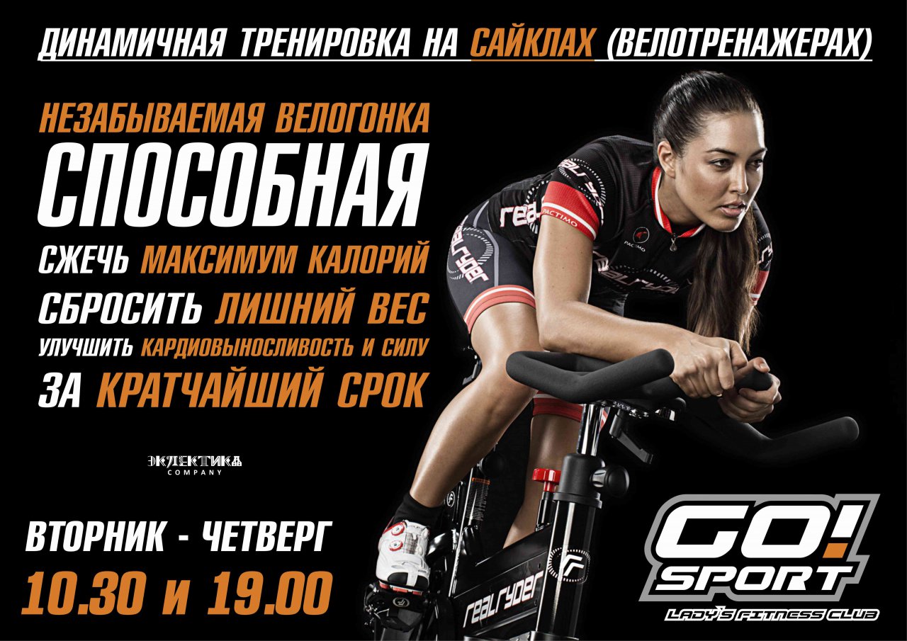 Это высокоинтенсивные аэробные занятия на стационарных велосипедах – сайклах – имитирующие гонки с различной интенсивностью. Направленные на быстрое снижение веса и позволяет быстро подтянуть мышцы. Тренировки укрепляют сердечнососудистую и дыхательную систему, а также дают высокую нагрузку на мышцы бедер и ягодиц. Занятия проводятся разово.