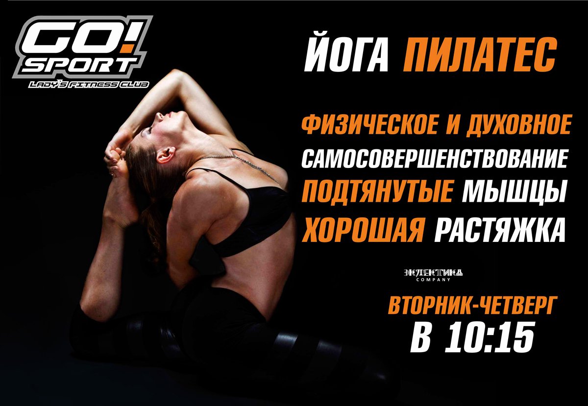 В женском фитнес клубе GO!Sport помимо тренажерного зала функционируют такие групповые занятия, как: функциональный тренинг, фитнес, пилатес, йога, AntiGravity, йога & AntiGravity, сайкл-тренировки, SKYJUMPING!