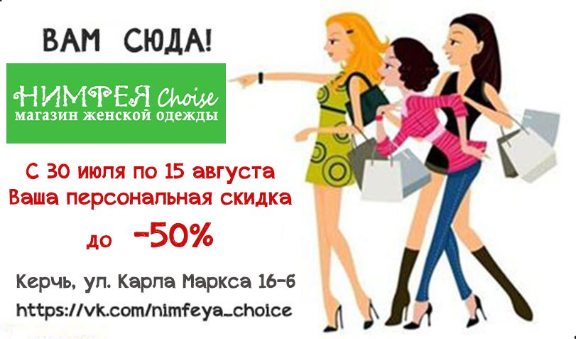 Дорогие девушки! Спешим сообщить о грандиозной распродаже брендовой одежды в нашем магазине «Нимфея Choice». СКИДКИ - до 50% НА ВСЮ СЕЗОННУЮ ОДЕЖДУ И ОБУВЬ!