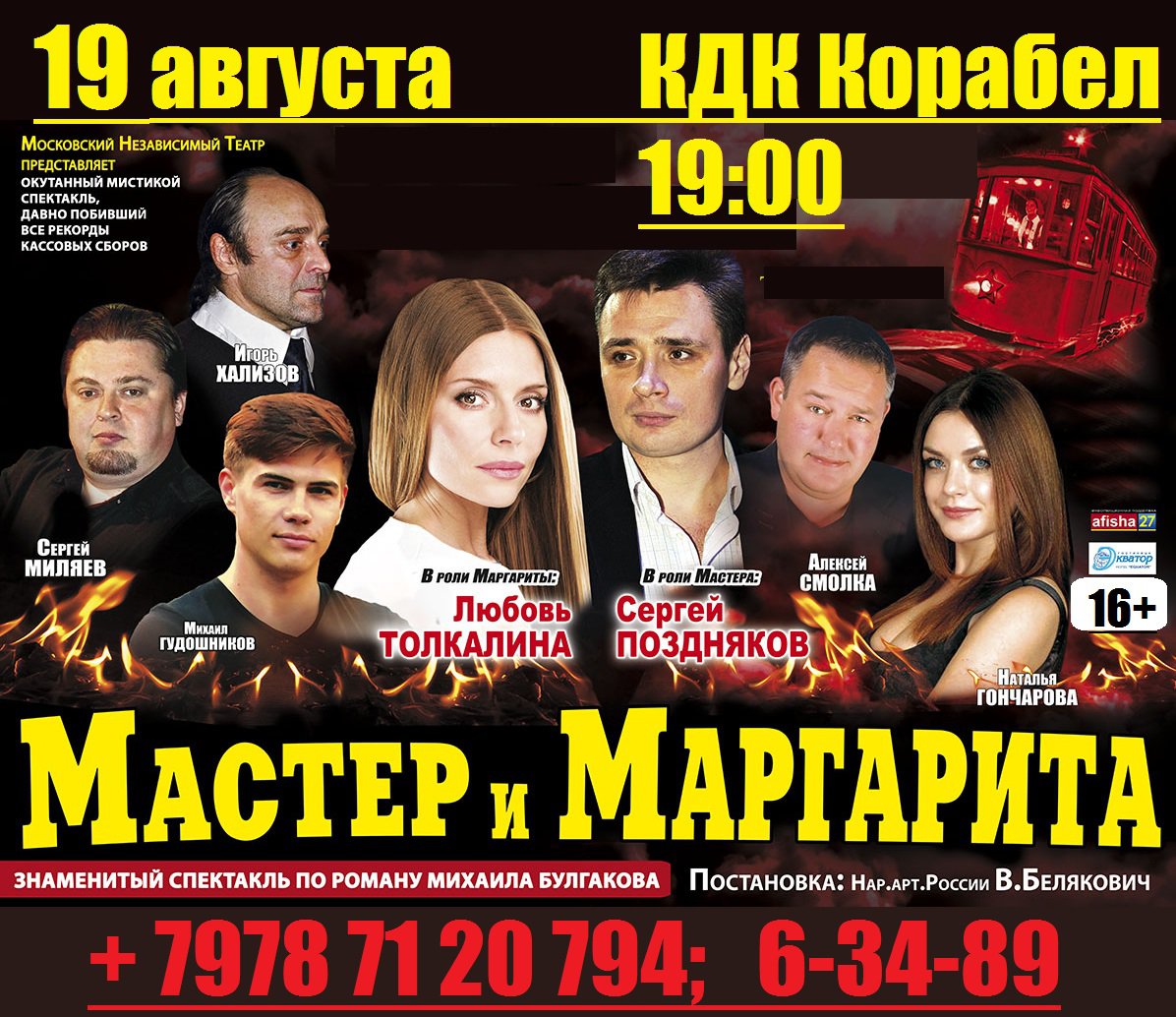 19 августа в 19:00 на сцене КДК «Корабел» легендарный спектакль «МАСТЕР И МАРГАРИТА».