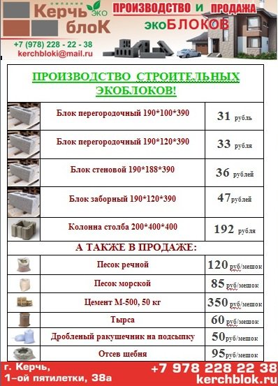 Компания «Керчьблок» производит строительные Экоблоки из дробленого ракушечника – экологически чистого природного материала. Строительство зданий из Экоблоков экономит немалые средства застройщика и его время. Строитель-кладчик тратит гораздо меньше времени на кладку одного Экоблока, чем на кладку нескольких кирпичей или ракушечника. Один Экоблок по объему равен шести-семи кирпичам. Монтаж происходит в четыре раза быстрее.