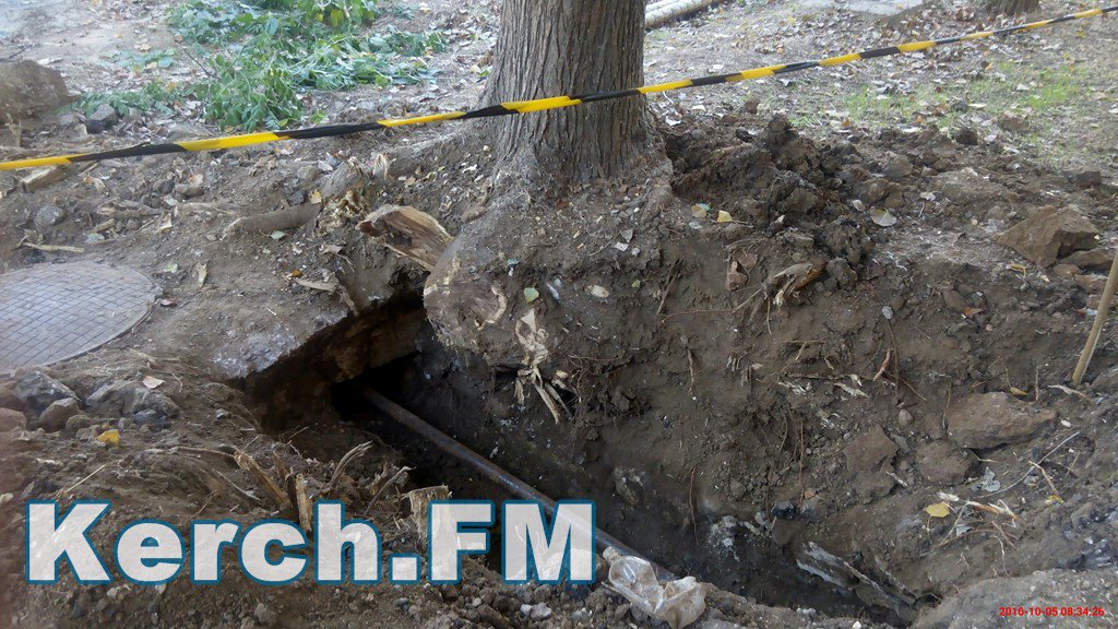 В редакцию Керчь.ФМ обратились жители дома №9 по улице Архитектурной. Керчане рассказали, что вчера, 4 октября, при замене трубы отопления рабочие спилили половину корней высокого дерева растущего возле первого подъезда. Жители опасаются, что дерево может рухнуть на дом или проходящую рядом газовую трубу.