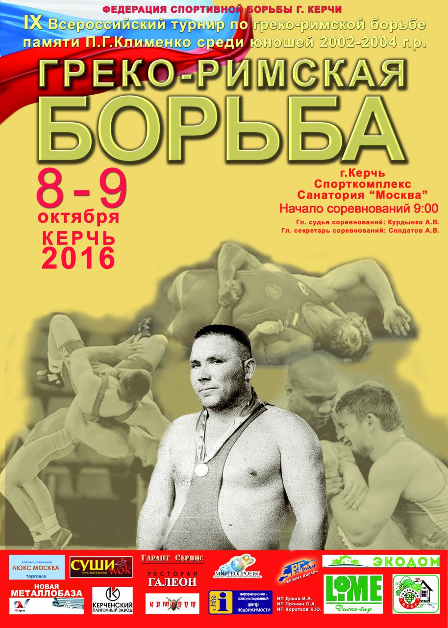 В Керчи, с 7 по 9 октября состоится IX Всероссийский юношеский турнир по греко-римской борьбе «Мемориал Клименко П.Г.». Мероприятие пройдет в спорткомплексе санатория «Москва». Организаторы приглашают всех желающих, - передает Керчь.ФМ