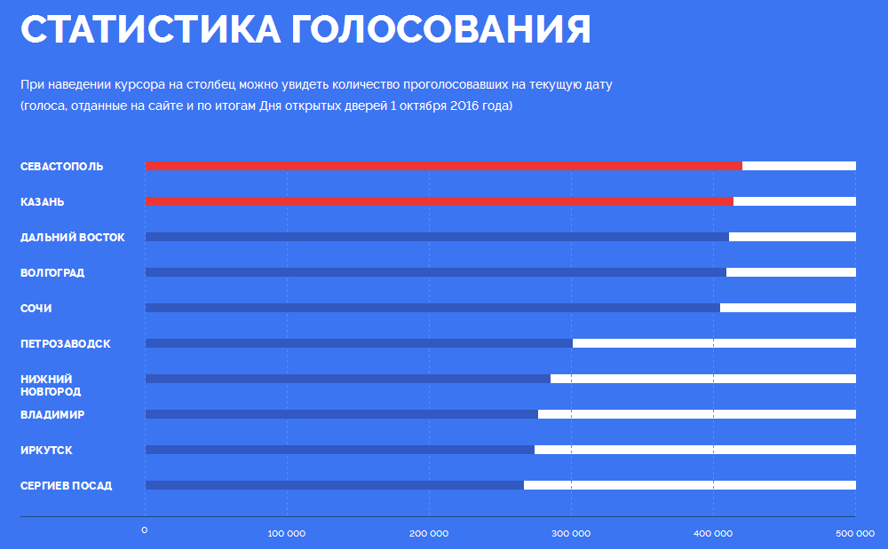 Черноморский город, представленный памятником затопленным кораблям и Херсонесом Таврическим, набрал 428 тысяч голосов. Столице Татарстана с Казанским кремлем и Казанским федеральным университетом отдали предпочтение 421, 7 тысячи россиян.