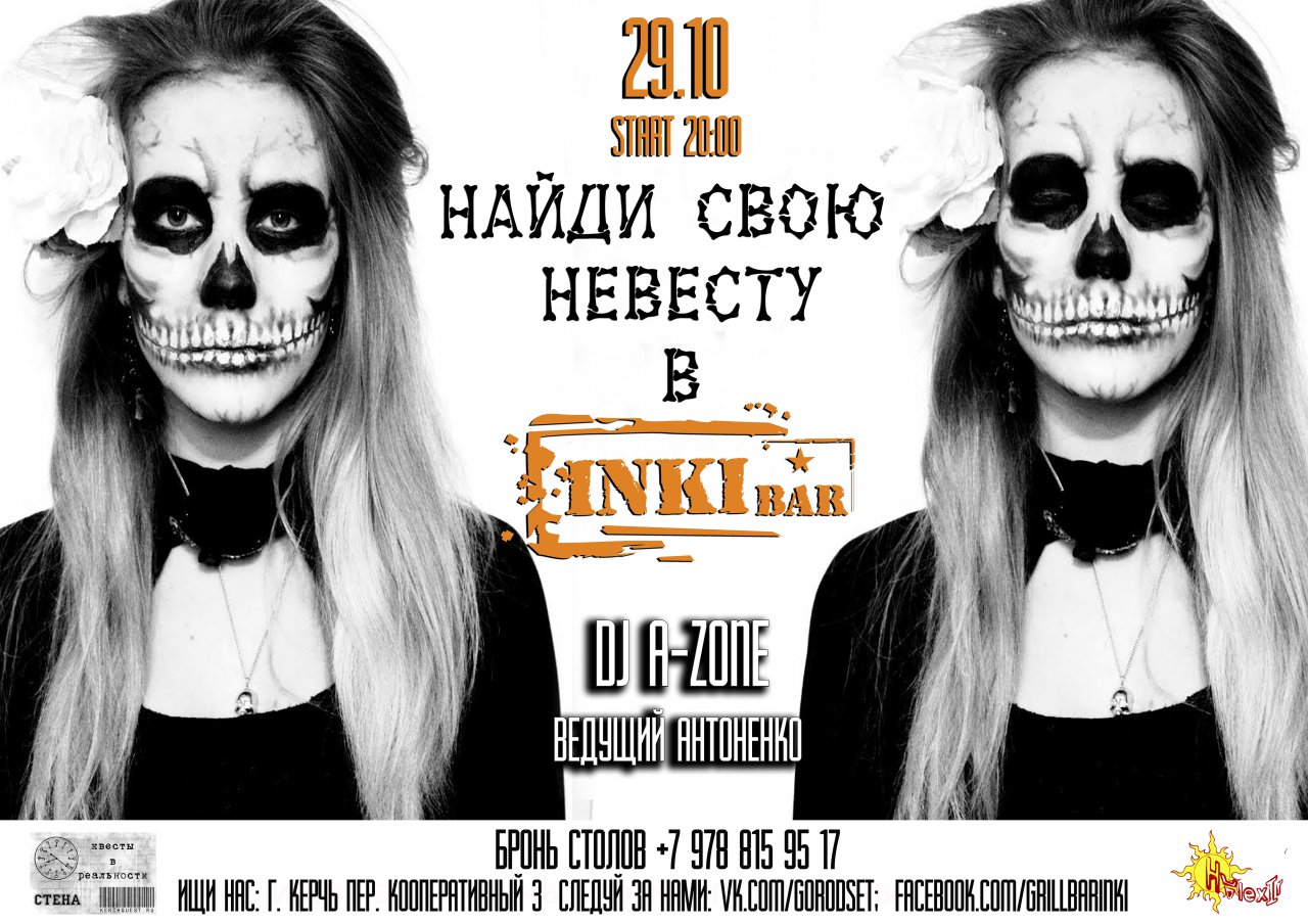 Друзья! 29 октября в 20.00 в Гриль-баре "INKI" милые невесты ждут Тебя на Хэллоуин. Мы устроим по страшному веселую ночь. Для самых активных будут разыгрываться множество подарков, среди которых есть конкурс на лучшую тыкву, а также сертификат на посещение квест-комнаты и многое другое. Ну а что, как говорится:" за свадьба без тамады". Развлекать наше адское пристанище будут DJ A-Zone и ведущий Андрей Антоненко. Не хочешь пропустить такое шоу? Тогда успей забронировать свой адский столик!