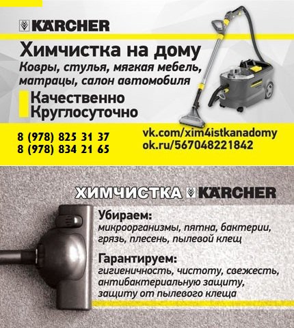 Мы Вам предлагаем услуги химчистки на дому! Чистим прямо у Вас дома мягкую мебель, матрацы, ковры и ковровые покрытия! Качественно!