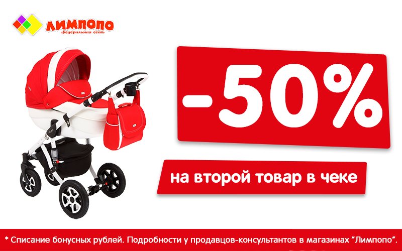У Вас есть бонусная карта и Вы хотите использовать накопленные бонусные рубли? Уже в эти выходные с 10 по 13 февраля во всех магазинах «Лимпопо» и «Велик» действуют ошеломительные скидки -50% на второй товар в чеке, оплатить который можно бонусными рублями!
