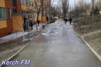 Керчане отметили, что вода полностью затопила дорогу и территорию у подъездов. Некоторые машины застревали в «ледяном озере».