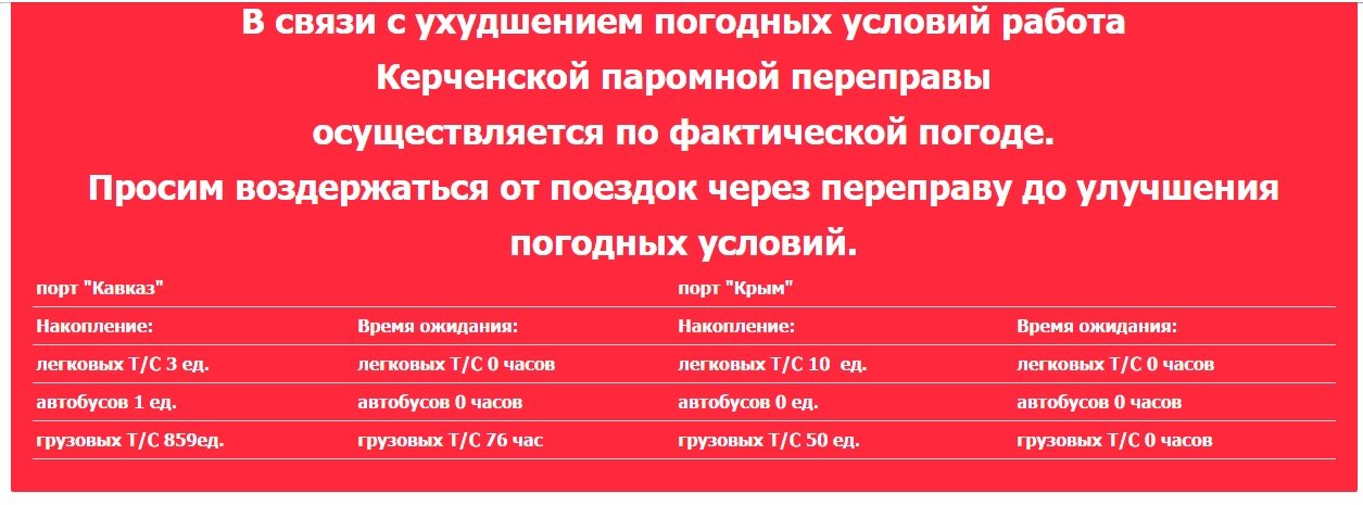 Также к 22:00 16 февраля ООО «Морская дирекция» на Керченской паромной переправе было организовано движение парома «Победа», чья работа на альтернативной линии по-прежнему невозможна.