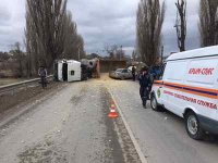 На трассе Керчь-Симферополь, 21 февраля днем, произошло ДТП. Столкнулись автомобили «Супер-МАЗ» и «Daewoo Nexia». В результате аварии грузовик, груженный щебнем, опрокинулся, полностью перекрыв транспортное движение. Также щебень засыпал автомобиль «Daewoo Nexia».