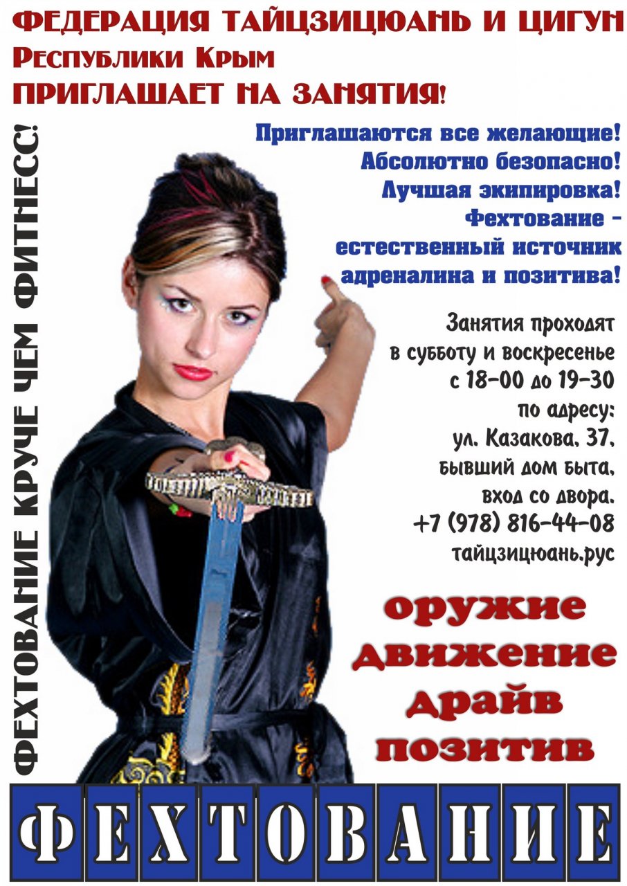 Адрес нашего зала: ул. Казакова, 37 (бывший дом быта, вход со двора). Справки и запись по телефону: +7 (978) 816-44-08 или e-mail: taichi-kerch@narod.ru.