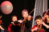 Также в фойе гостей встречал образцовый оркестр музыкальной школы №1, а также выставка работ юных керчан.