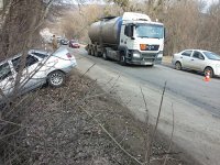 Как оказалось, в вечернее время суток, водитель не справился с управлением из-за гололедицы и вылетел в кювет.