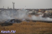 В Керчи, 11 марта, в районе Горьковского моста горит сухая трава. Площадь пожара  - несколько десятков метров.
