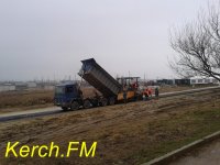 Несмотря на дождь, сегодня асфальтировали дорогу к домам для переселенцев из зоны Керченского моста, - передает Керчь.ФМ.